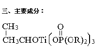 屬磷酸型單烷氧基類鈦酸酯,類似美國Kenrich公司KR-12。是目前國內(nèi)市場磷酸型的改性換代品,色淺、穩(wěn)定、粘度小,分散性更好。既適用于塑料,也適用于涂料及橡膠,是顏料、填料的表面活性劑,具有優(yōu)良的分散效果。